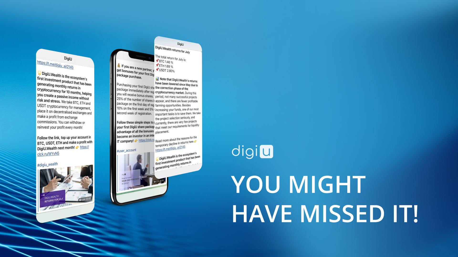DigiU.Wealth is the ecosystem's first investment product, which has been generating monthly returns in cryptocurrency for 10 months now, helping to create a passive income without risk or stress. What was the return in July? Find out from the post.
